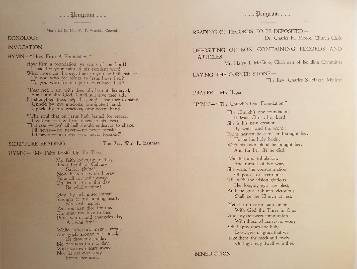 So the church knew it could pay for the exterior and Palmer Hall below the sanctuary (and maybe part of the narthex) but there wasn’t nearly enough money for the actual sanctuatry itself. And still, the congregation was dedicating a cornerstone with several hundred people in attendance in the cold.